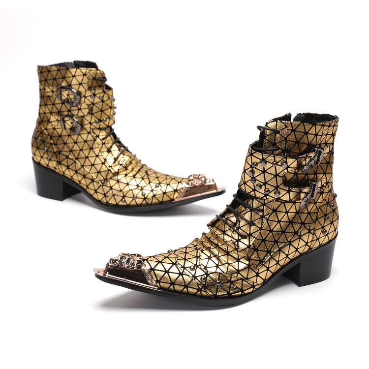Golden Rivet Mesh Pointed Shoes 9980
