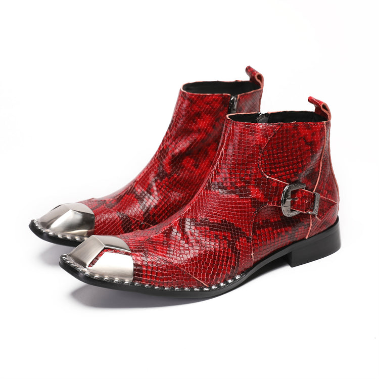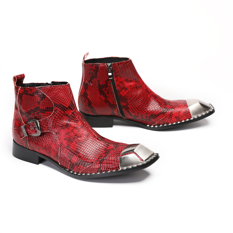 Red Snake Metal Buckle Pointed Shoes 9206