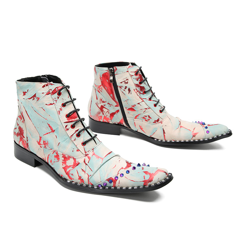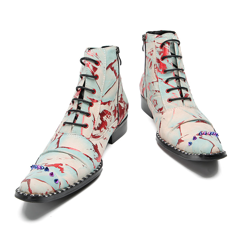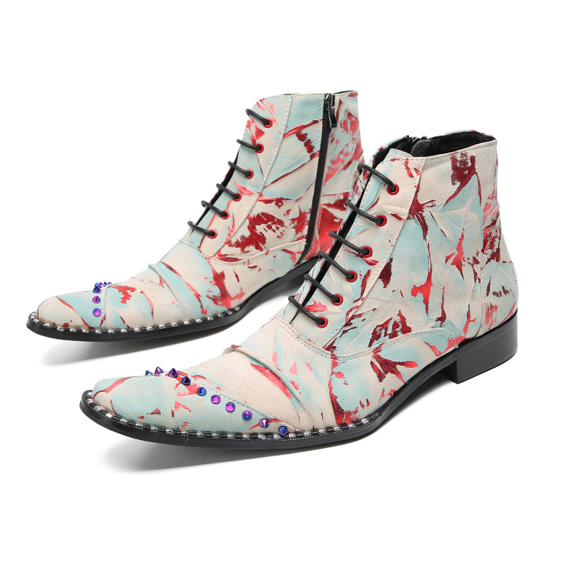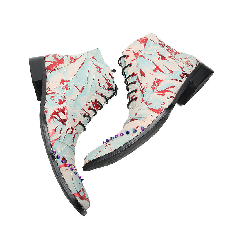 Colorful Stripe Rivet Toe Pointed Shoes 9962