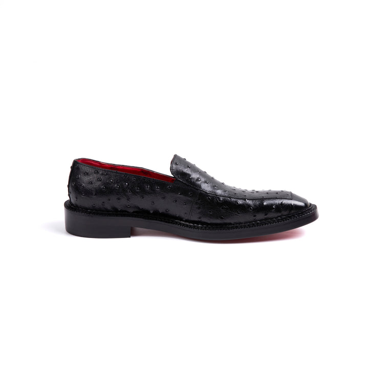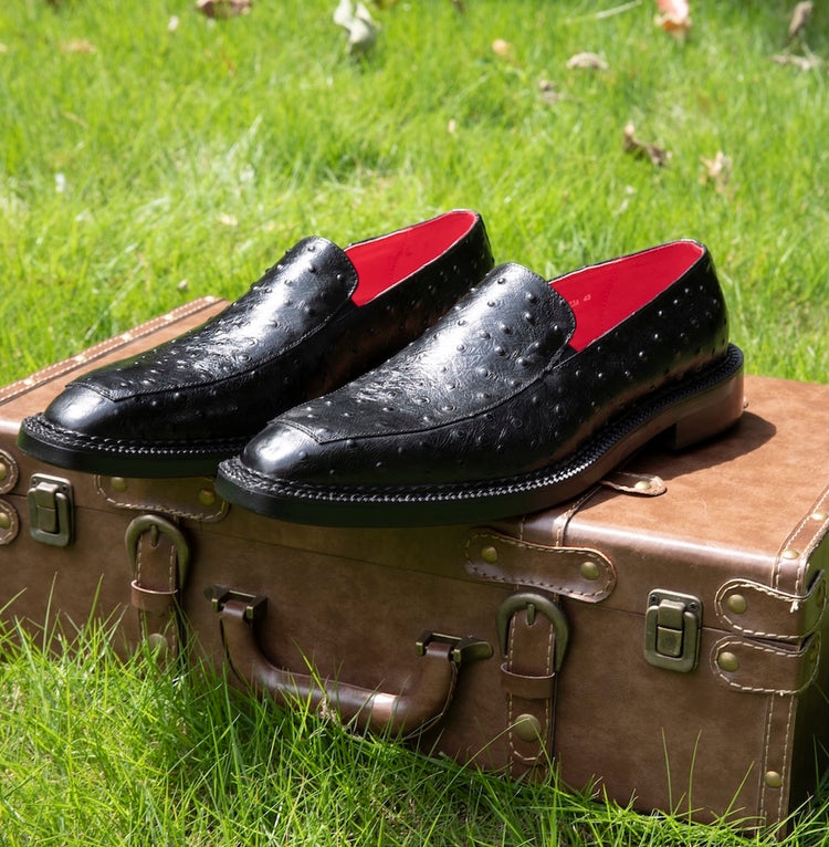 Black Ostrich Leather Dress Shoes VK006