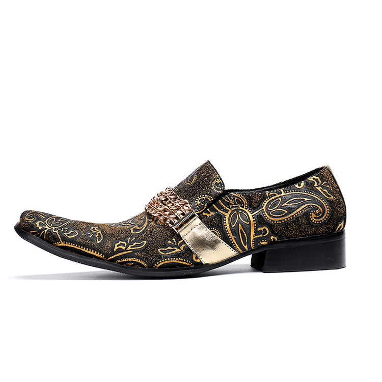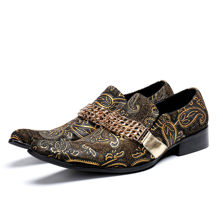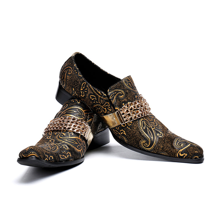 Black Gold Chain Pointed Shoes 9184
