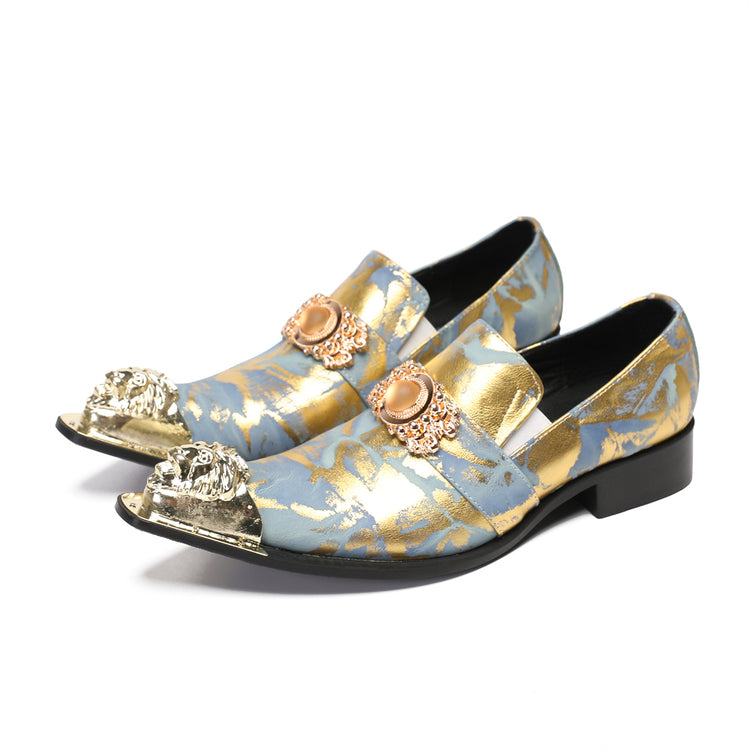 Blue Gold Lion Decoration Pointed Shoes 9194
